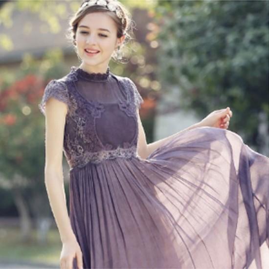 ドレスワンピース パープル 春夏 半袖 姫袖 フレア ロング ミディアム ミモレ丈 ひざ下丈 フリル レース 刺しゅう エレガント 甘ロリ クラシカル クラロリ パフスリーブ お花 フラワー モチーフ ロリータゴスロリ専門通販ショップluxury ラグジュアリー 安い価格で